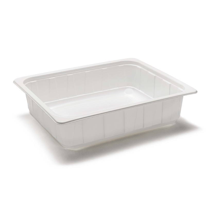 Vaschette termosaldabili per alimenti in PP formato 1/2 Gastronorm H80, ideali per confezionamento, conservazione e trasporto di cibi caldi e freddi.